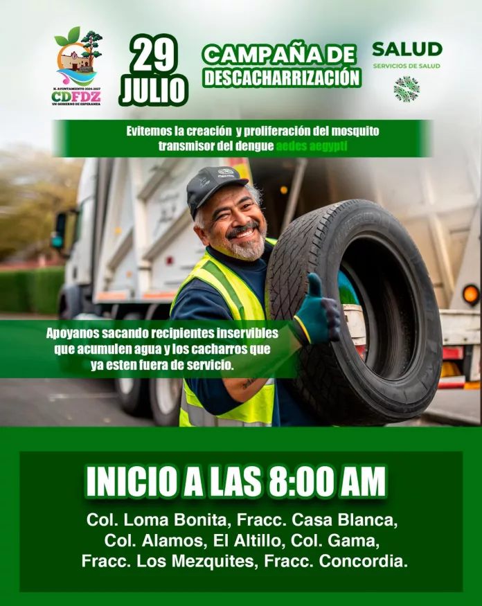 Este martes 29 de julio, el Gobierno Municipal en coordinación con los Servicios de Salud, llevará a cabo una importante Campaña de Descacharrización ![]()