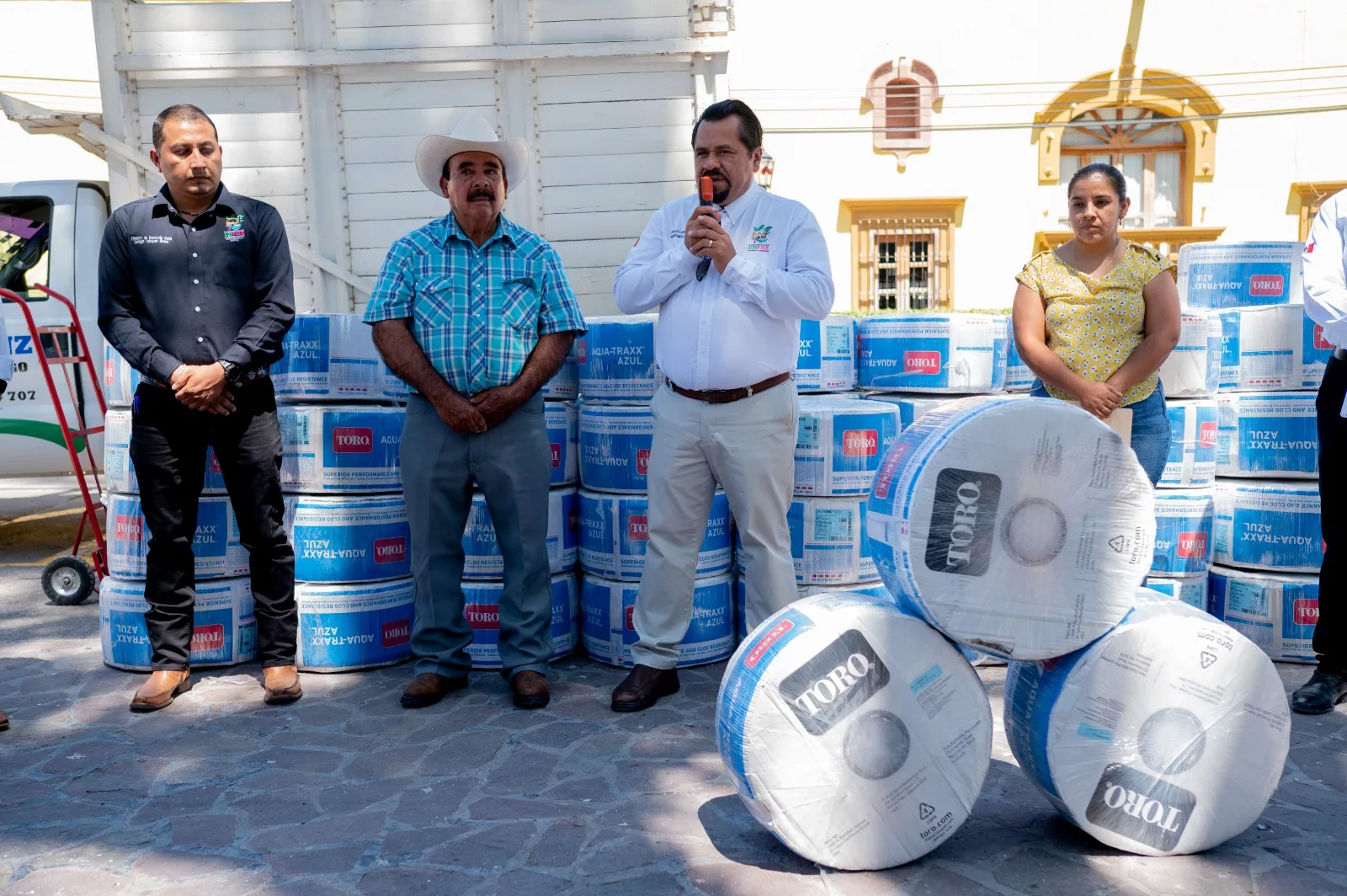 Por su parte, el titular de Desarrollo Rural, Refugio Vázquez, explicó que se entregaron cerca de 300 rollos de cintilla marca Toro, y se continuará la distribución en el ejido El Terremoto, zona de gran producción bajo riego. ![]()