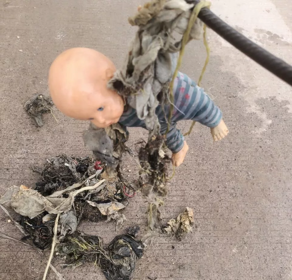 Durante los trabajos se retiraron aproximadamente 120 kilos de basura y residuos como trapos, juguetes, plásticos y otros objetos que obstruyen el flujo normal del agua.