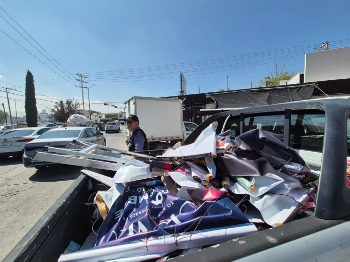 Durante las acciones, personal operativo retiró una tonelada y media de material publicitario entre lonas, carteles, pendones y anuncios colocados sin permiso municipal, los cuales promovían eventos no registrados, comercios y espectáculos que no contaban con la debida autorización.