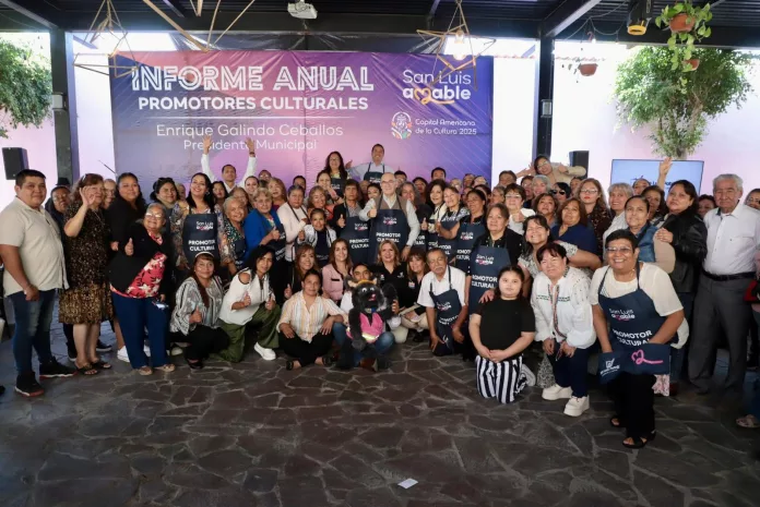 En la reunión anual con promotores culturales del municipio de San Luis Potosí, el maestro Galindo Ceballos, convivió con las y los promotores de colonias, en quienes reconoció la fuerza y la fortaleza que tienen en sus comunidades, y agradeció el trabajo y apoyo que hacen en sus calles y colonias, conservando siempre la tradición popular.