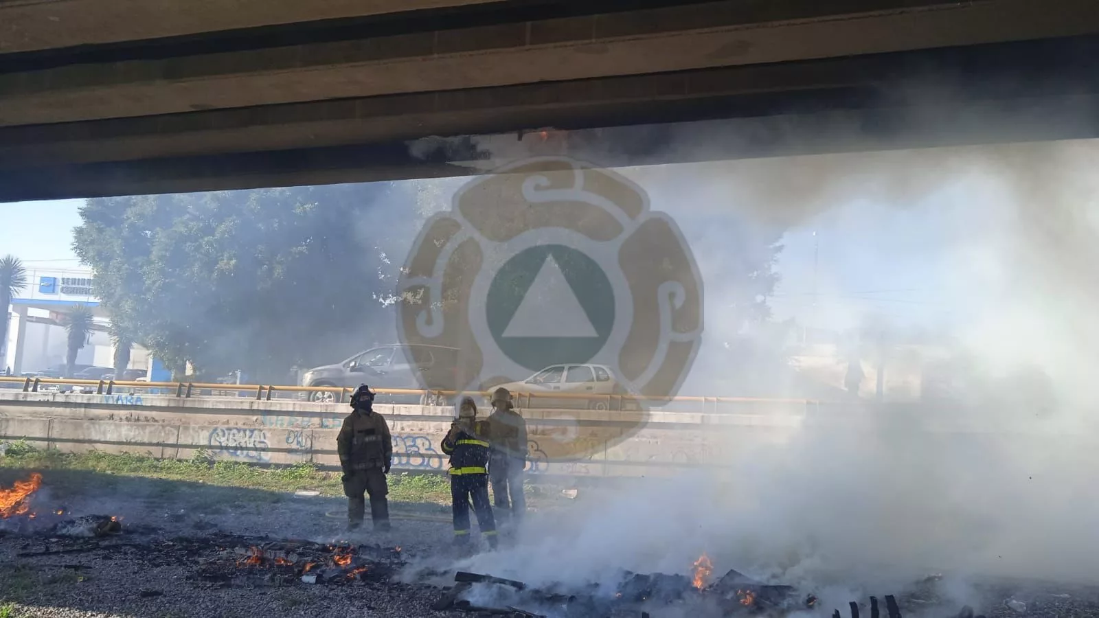 La mañana de este miércoles, elementos de Protección Civil Municipal atendieron un conato de incendio en la parte baja del distribuidor vial Juárez, en San Luis Potosí.