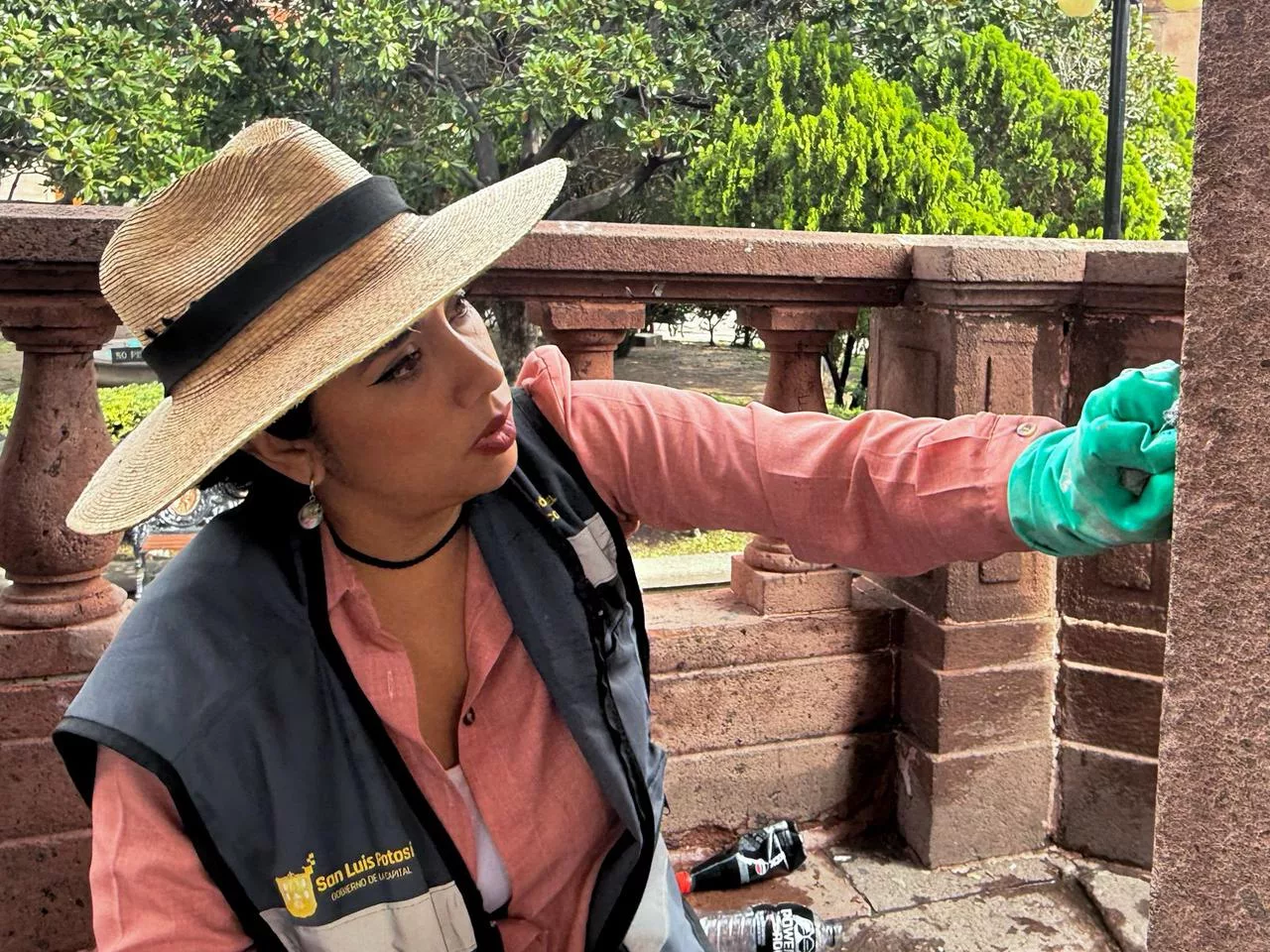 En seguimiento a las instrucciones del Alcalde Enrique Galindo Ceballos para preservar la imagen y el valor de los espacios ubicados en la zona patrimonial de la Capital potosina, la Unidad de Gestión del Centro Histórico (UGCH) llevó a cabo trabajos de eliminación de grafiti en diversos puntos del Centro Histórico.