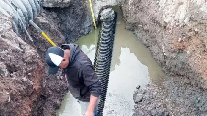 En seguimiento a los trabajos de atención al colapso de drenaje registrado en la zona de Tierra Blanca, la Dirección del Agua del Ayuntamiento de la Capital con la coordinación operativa de INTERAPAS iniciaron la reposición de tubería de alta resistencia para la recuperación y mejora de la infraestructura hidráulica afectada.