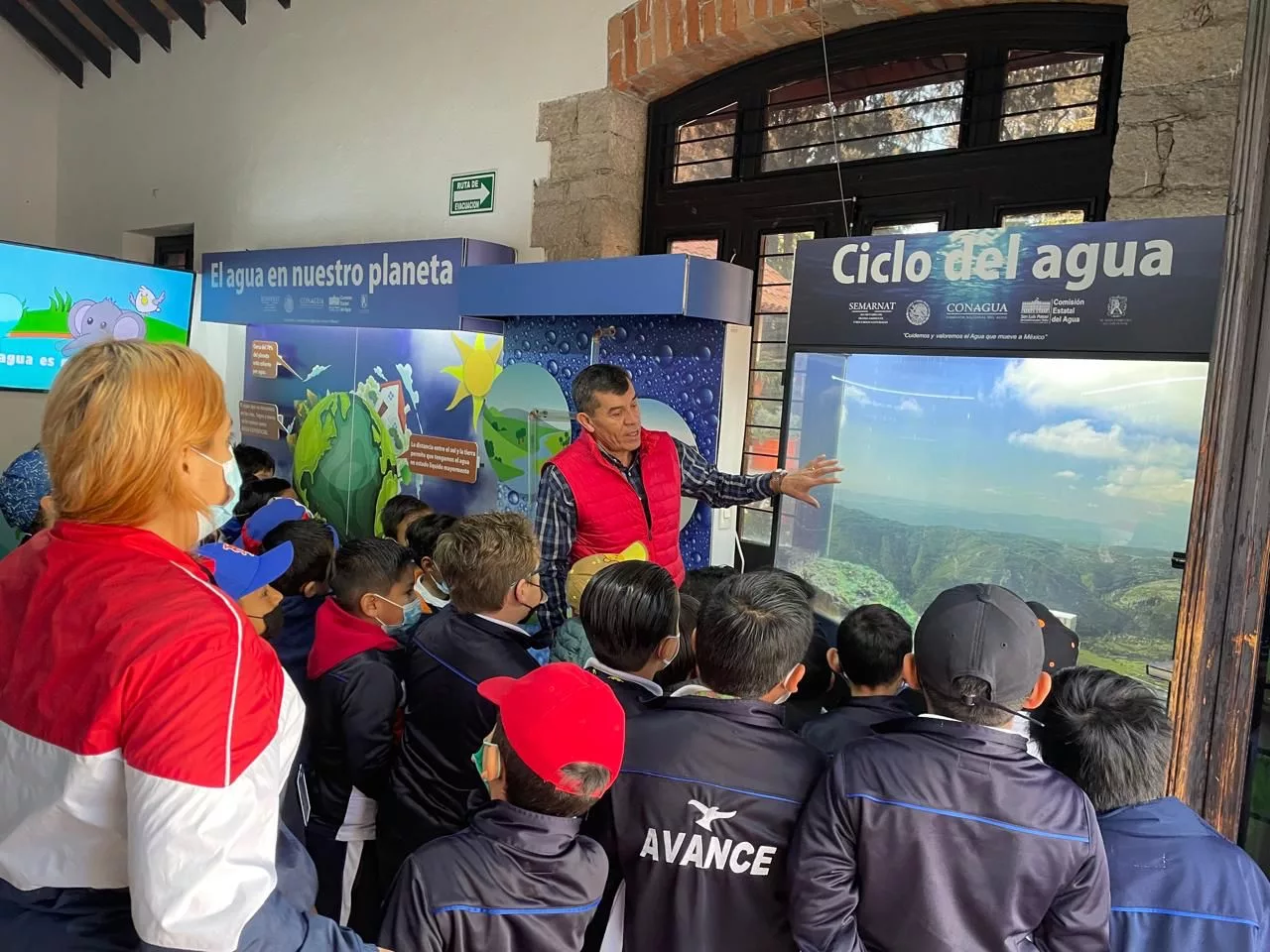 Entre la asistencia en el CIEA sobresalen las alumnas y alumnos, pero también docentes del colegio Avance del 2o. grado de primaria, quienes con atención conocieron qué es la Huella Hídrica, pero sobre todo, se comprometieron a utilizar con mayor conciencia el agua potable, a la par de reafirmar los conocimientos compartidos en el área de Cultura del Agua.