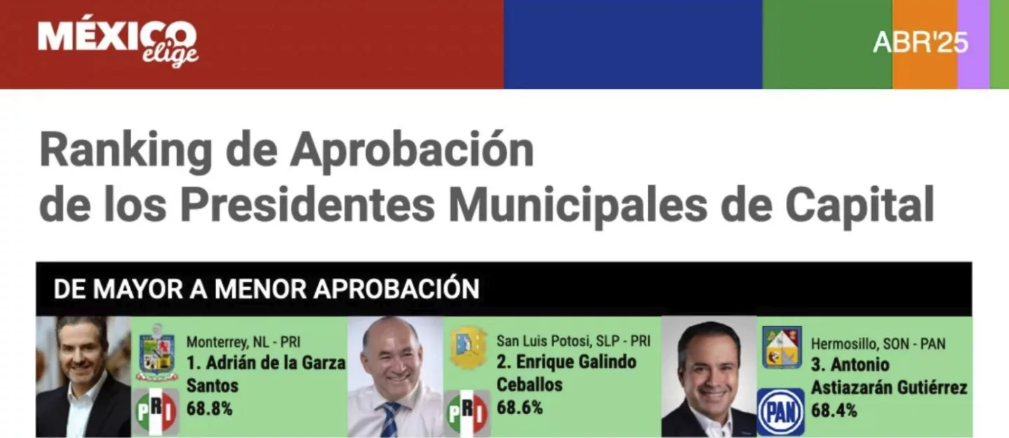 Enrique Galindo Ceballos, Presidente Municipal de San Luis Potosí, se posicionó en el segundo lugar nacional entre los alcaldes de ciudades capitales con mayor aprobación, de acuerdo con la medición de México Elige correspondiente a abril, con un 68.6 por ciento de opiniones favorables. Esta alta aceptación refleja el respaldo ciudadano a su modelo de gobierno.