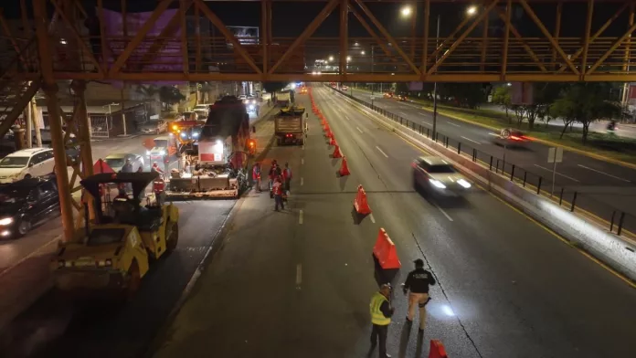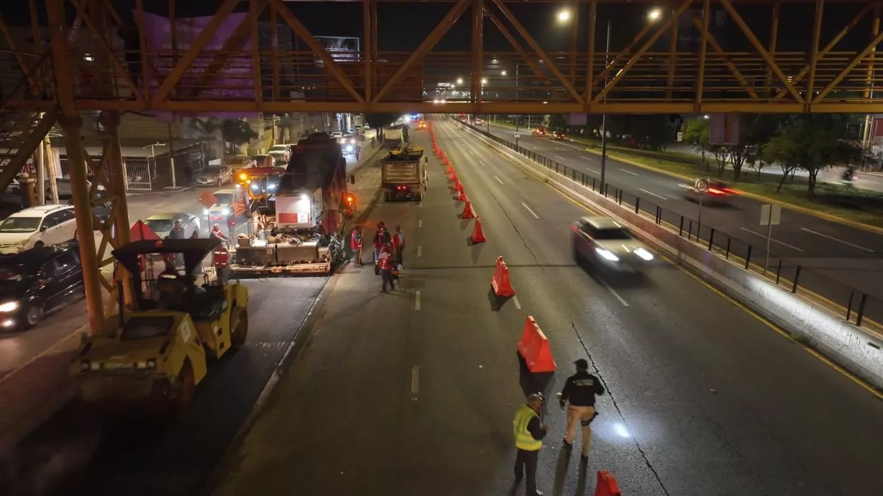 Las obras se realizan en horarios nocturnos, de 9 de la noche a 5 de la mañana, de domingo a viernes. Para minimizar el impacto en el tránsito, solo se cerrará medio carril por cada sentido, lo que permitirá que la circulación vehicular continúe.