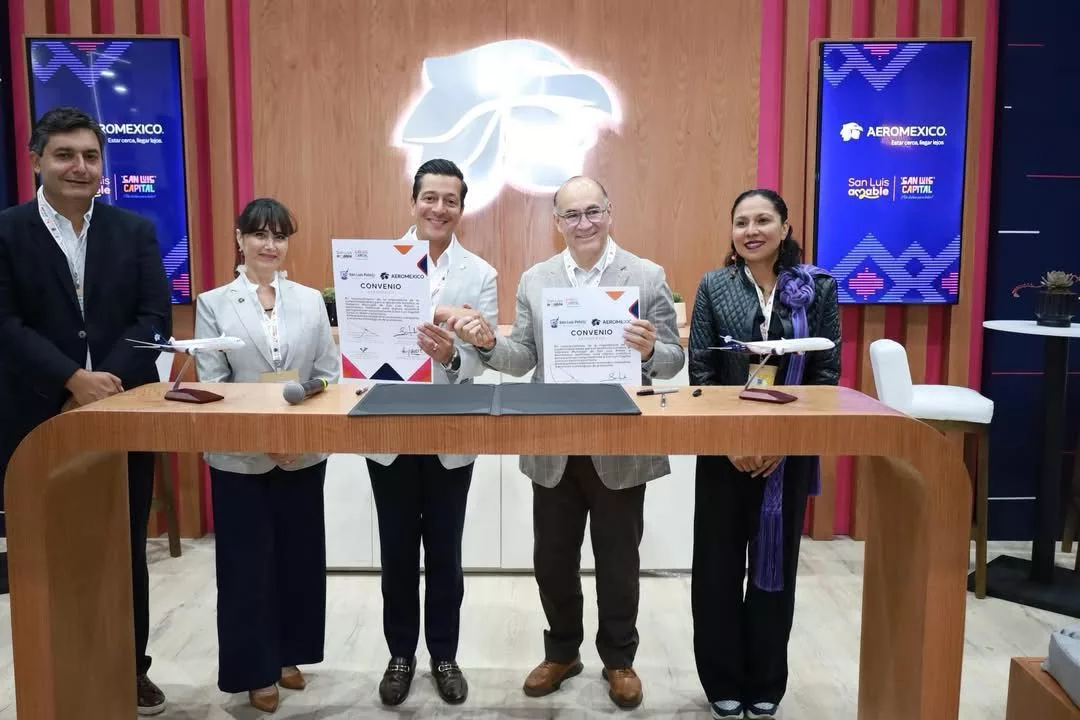 Tijuana, Baja California.- Durante el Tianguis Turístico 2025 en Tijuana, el Gobierno Municipal de San Luis Capital firmó un convenio con Aeroméxico para impulsar campañas conjuntas que promuevan a la ciudad como un destino prioritario en el mercado nacional e internacional. Con esta alianza, encabezada por el Alcalde Enrique Galindo Ceballos y el Vicepresidente Global de Ventas de Aeroméxico, Giancarlo Mulinelli, se reforzará la conectividad aérea de la Capital potosina.