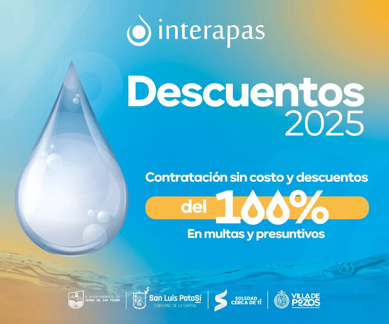 San Luis Potosí. – Cómo parte del programa de descuentos para el 2025, el Interapas ofrece estímulos fiscales a propietarios que no tienen contratados los servicios de agua potable, alcantarillado y saneamiento, ofreciendo contratos sin costo y 100 por ciento de descuento en multas y presuntivos.