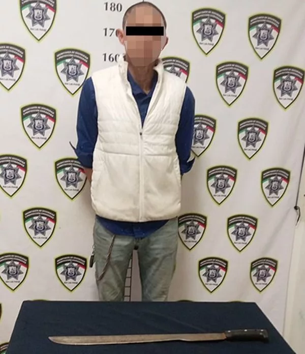 Agentes municipales de la Secretaría de Seguridad y Protección Ciudadana (SSPC) efectuaron el aseguramiento de una persona de sexo masculino que fue ubicado caminando sobre la avenida Salvador Nava Martínez portando un machete con una hoja afilada de más de 50 centímetros.