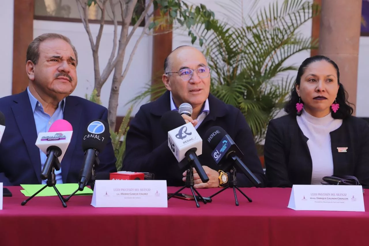 Respecto a la Procesión del Silencio del próximo viernes 18 de abril, el Presidente Municipal Enrique Galindo Ceballos aseguró que su administración trabaja en estrecha coordinación con el Gobierno del Estado y la asociación Tradiciones Potosinas para garantizar el éxito del evento. Subrayó que esta celebración, declarada Patrimonio Cultural Inmaterial, es un referente nacional en turismo religioso y representa una oportunidad para fortalecer la identidad de la ciudad.