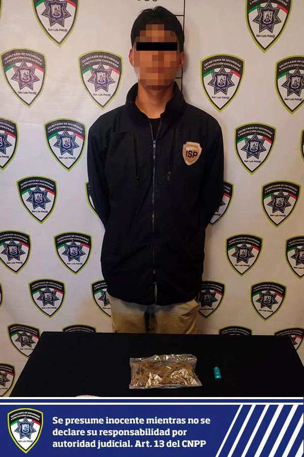 Durante el patrullaje, los oficiales vieron al joven fumar con un objeto metálico. Al realizarle una revisión preventiva, encontraron una bolsa con 46.3 gramos de hierba seca verde, con características de marihuana.